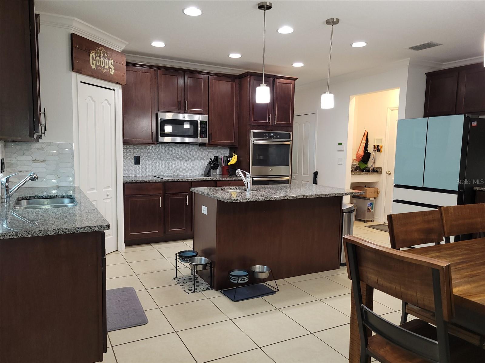 This home is a must see! Shows like a model home! This 3 bedroom, 2 bath home has a den that can be used as a 4th bedroom, plus an office. 2 car garage. Home was custom designed by sellers and is loaded with upgrades: **built in speakers in ceiling of lanai and living room ** gourmet kitchen with stainless steel appliances ** pendant lights ** granite counter tops in kitchen & both baths ** custom tile back-splash ** crown molding through-out home ** tray ceiling in primary bedroom ** Nest thermostat ** tile & laminate flooring throughout home (no carpet) ** garden tub and walk-in shower in master bath ** dual sink vanities in both bathrooms ** cabinets in laundry room ** upgraded half lite front door ** horizontal wood faux blinds ** In-Wall pest control system. Sellers added custom screened in pool & hot tub with salt water system & heater. Also added solar panels for savings on electric bill. Home is located near major highways, shopping and less than an hour from Disney, Sea World and much more.